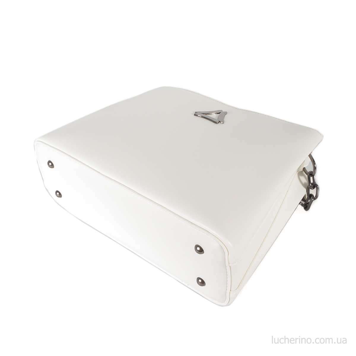 Сумка виготовляється зі шкірозамінника високої якості, який найкраще зарекомендував себе у використанні. Стінки гарно тримають форму виробу, а спеціально вмонтовані металеві ніжки захищатимуть від пошкоджень. Фурнітура як завжди на висоті і в даній моделі використана в кольорі - нікель.  До комплекту входить довгий ремінець, який регулюється.