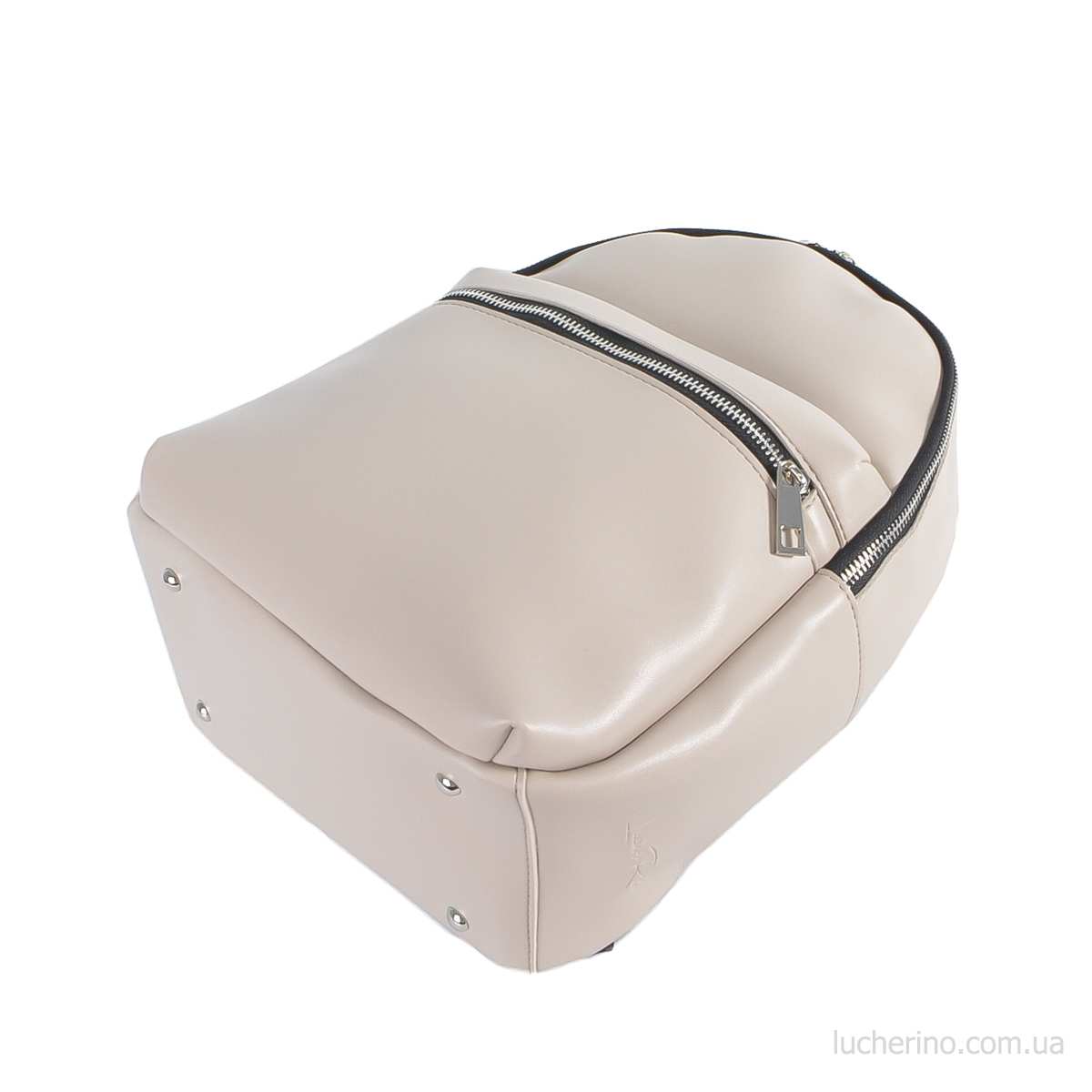 Рюкзак від українського виробника ТМ "LucheRino". Виготовлений з красивого якісного шкірозамінника, підкладка із міцної текстильної тканини. Рюкзак має одне основне відділення, яке застібається блискавкою. Горизонтально розташована кишенька на передній зовнішній стінці дуже зручна та практична у використанні. В середині розміщена потайна кишенька та невелика кишенька для мобільного телефона. Ремінці регулюються під бажаний розмір.