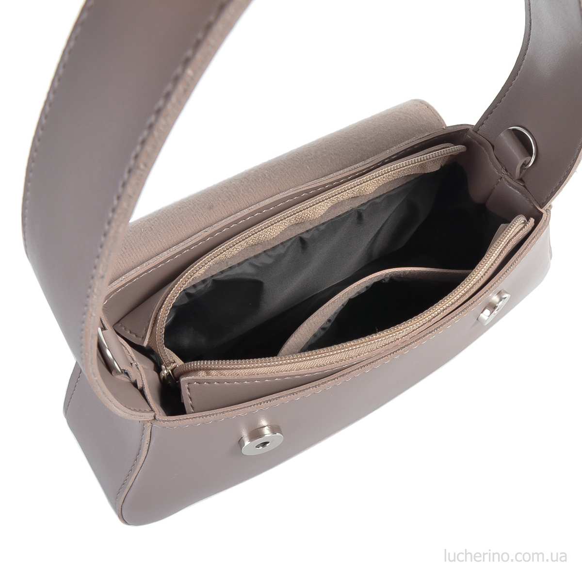 Невелика сумочка від українського виробника ТМ "LucheRino". Виготовлена з якісного шкірзамінника, підкладка з міцної текстильної тканини. В середині сумки невелика потайна кишеня. Модель ідеально підійде як для класичного костюма так і для вечірнього плаття.