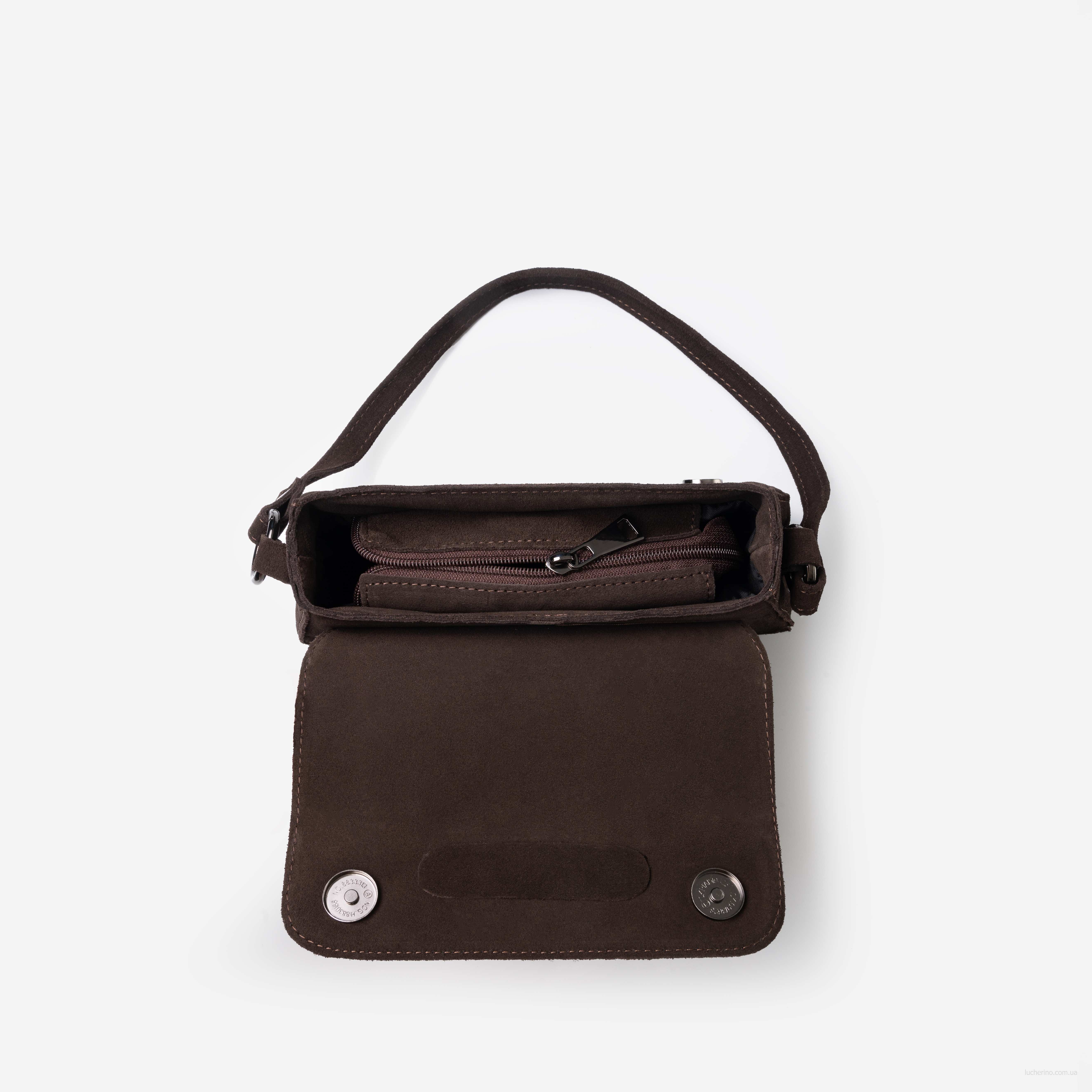 Увага: сумки із замші можуть незначно залишати сліди кольору на світлому одязі або інших поверхнях. Це пов’язано з природними властивостями матеріалу. Рекомендуємо уникати сильного тертя та контакту з вологою.