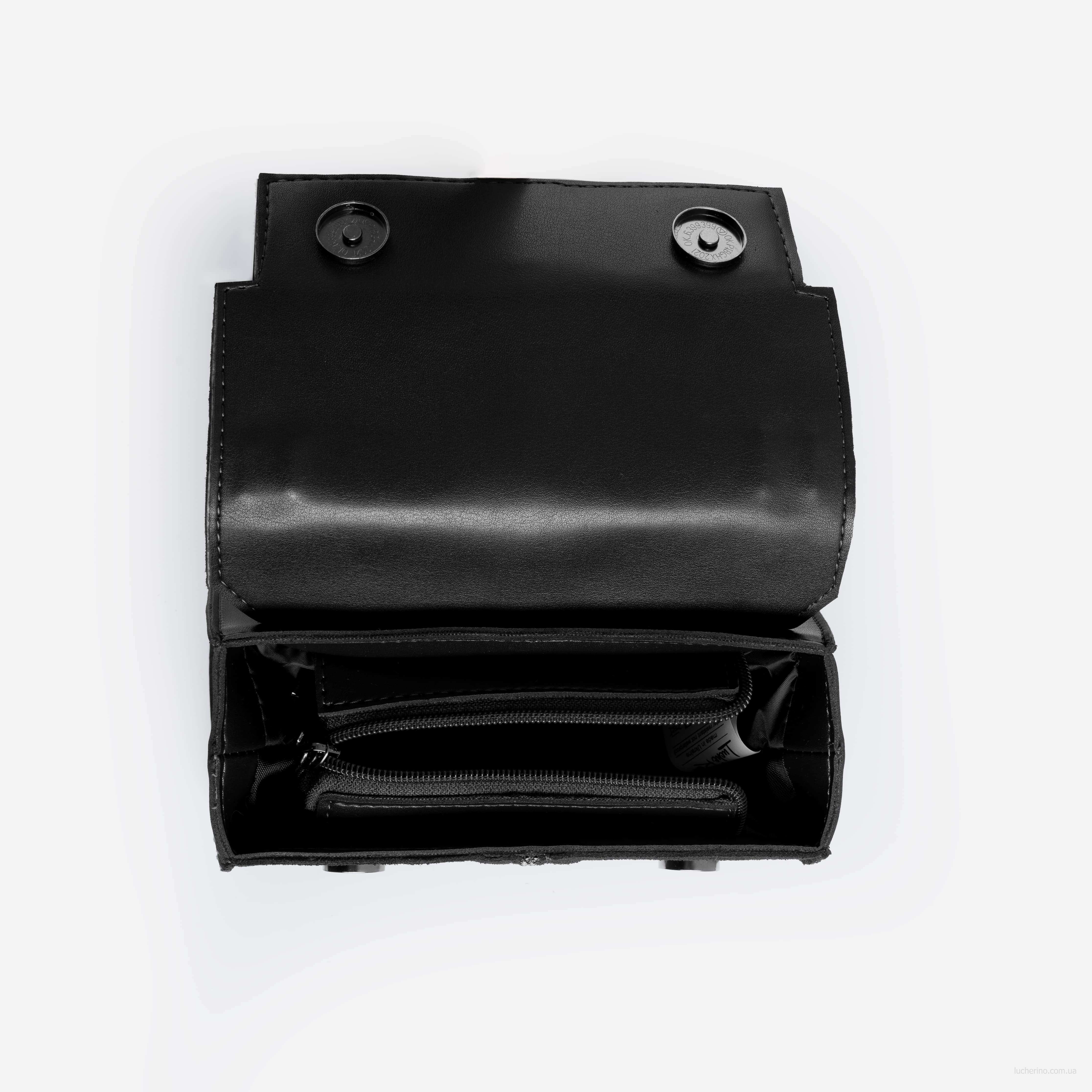 Весь виріб зачиняється на блискавку, яка накривається клапаном на магнітній кнопці. Сумочка має довгий ремінець, який можна відрегулювати під потрібний розмір, для легкого транспортування через плече, та короткий.