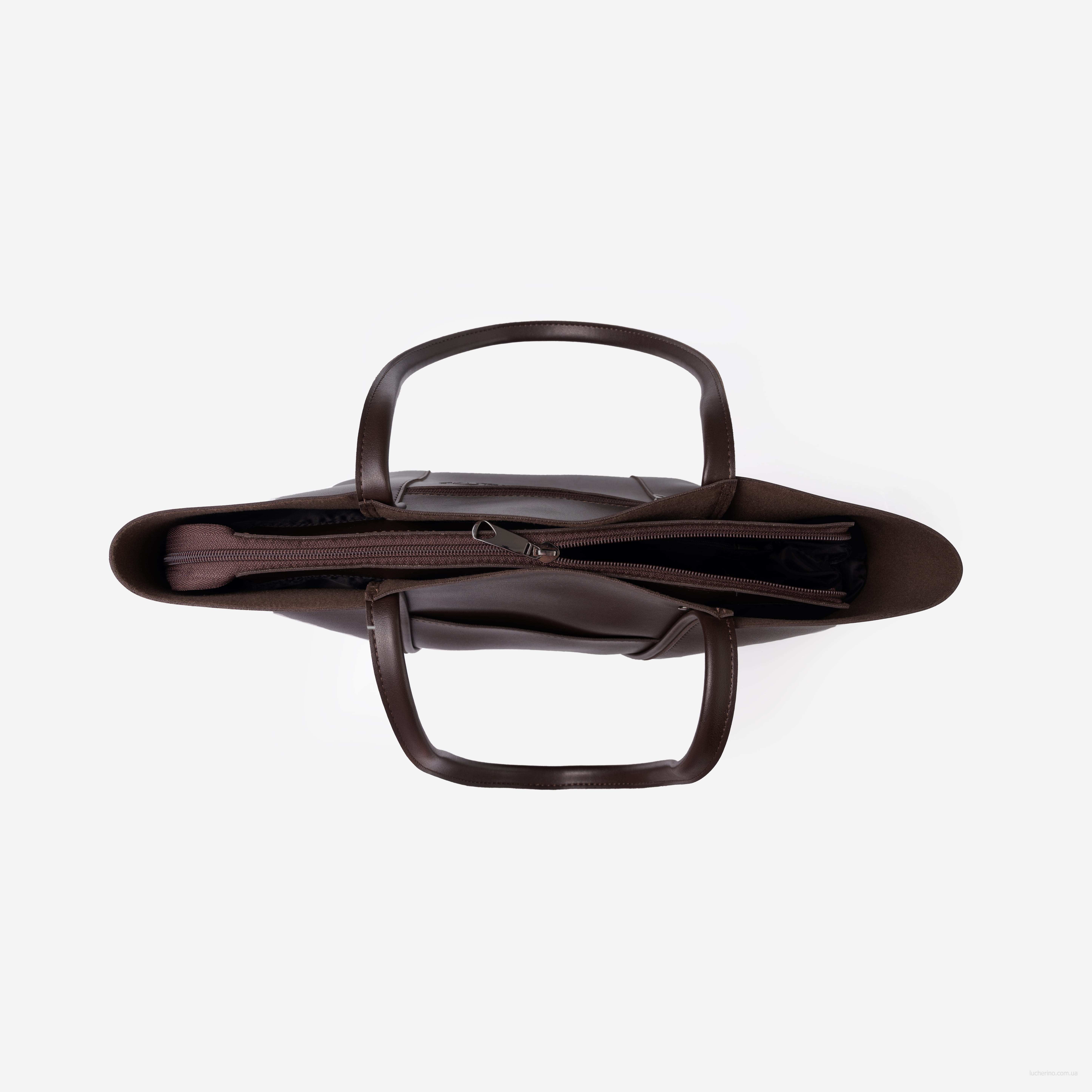 Елегантна сумка від відомого українського виробника  "LucheRino" лаконічно завершить образ шанувальниці простого дизайну та мінімального декору. Модель виконана з високоякісного шкірзамінника в стилі "Tote Bag", який основним акцентом ставить зручність.