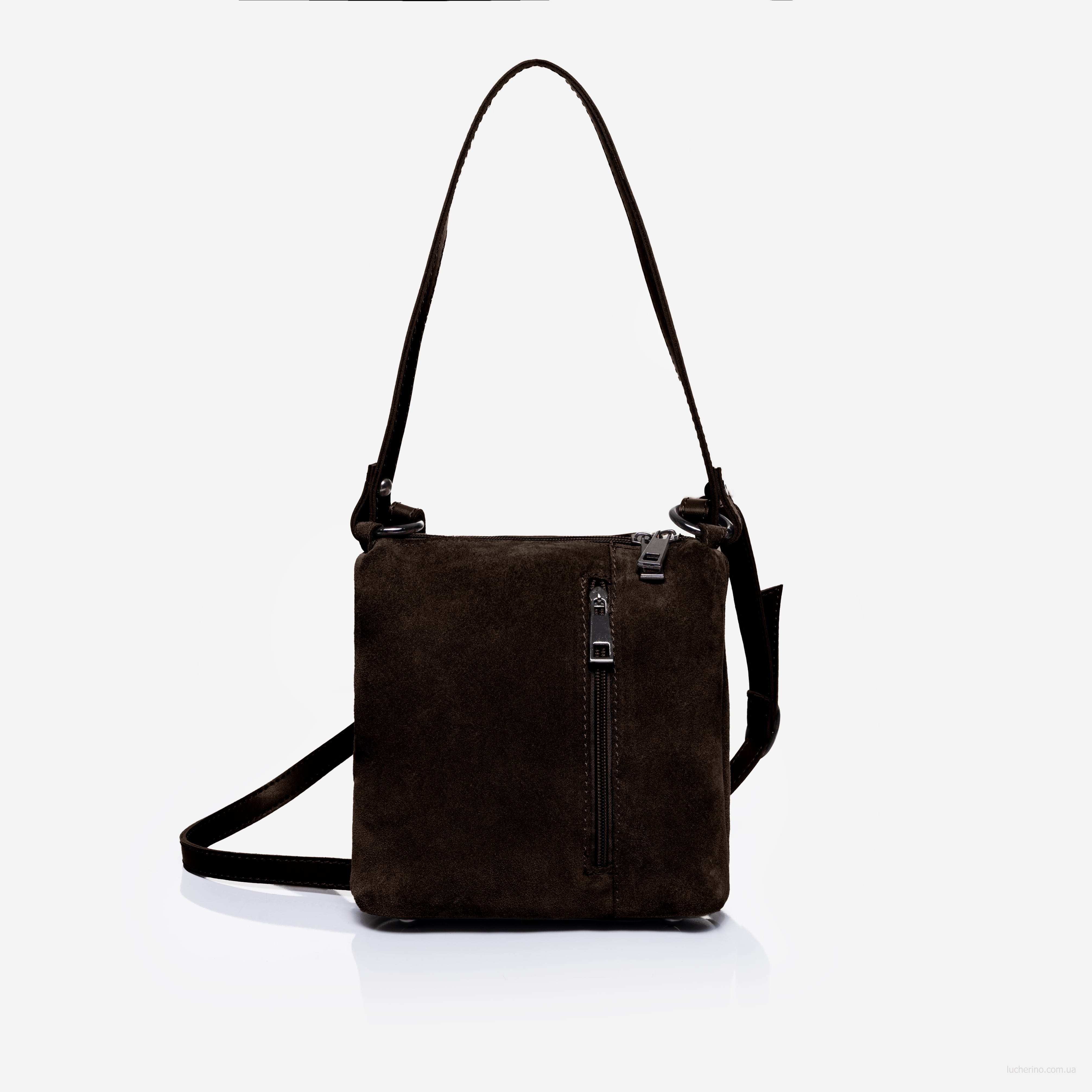 Увага: сумки із замші можуть незначно залишати сліди кольору на світлому одязі або інших поверхнях. Це пов’язано з природними властивостями матеріалу. Рекомендуємо уникати сильного тертя та контакту з вологою.