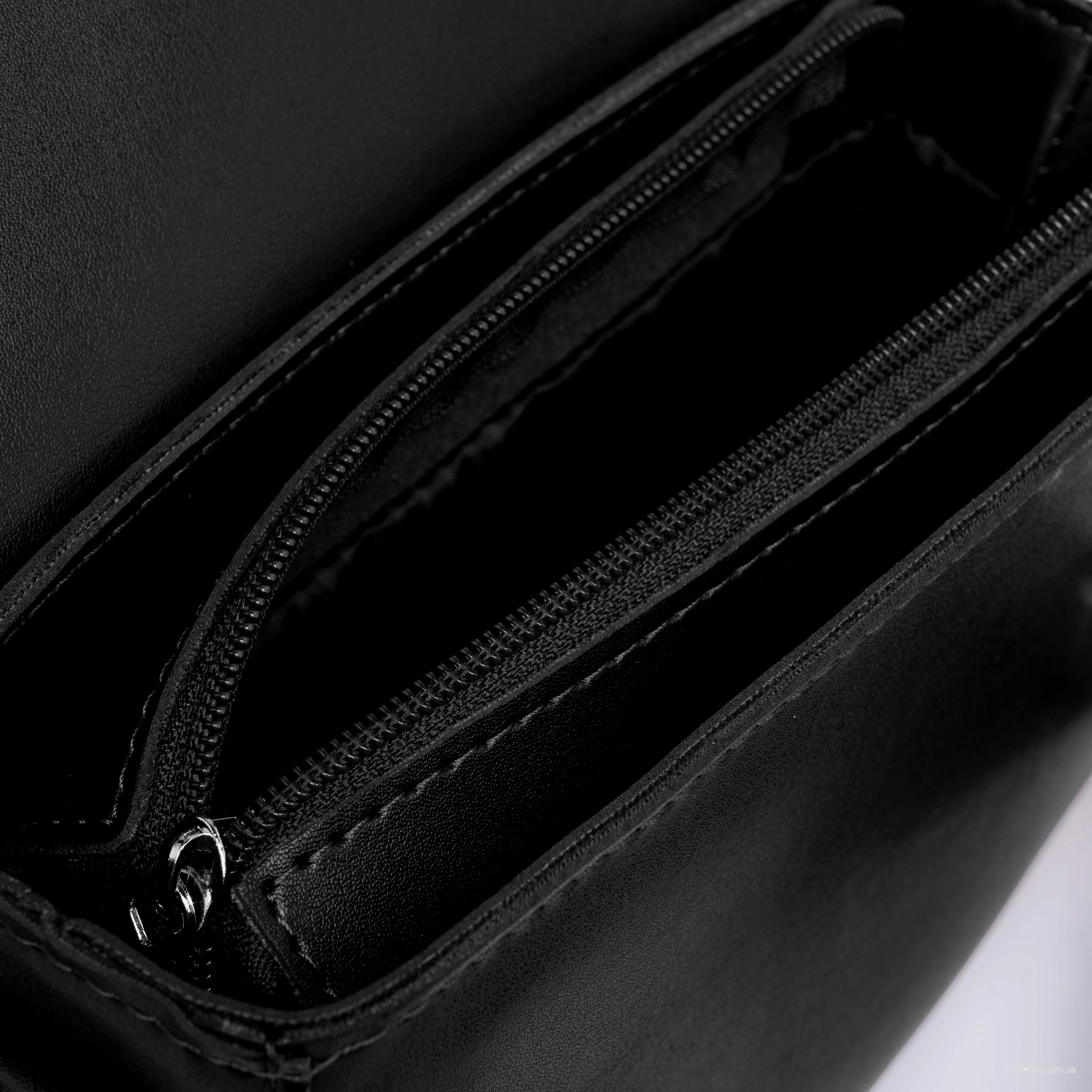 Весь виріб зачиняється на блискавку, яка накривається клапаном на магнітній кнопці. Сумочка має довгий ремінець, який можна відрегулювати під потрібний розмір, для легкого транспортування через плече, та короткий.