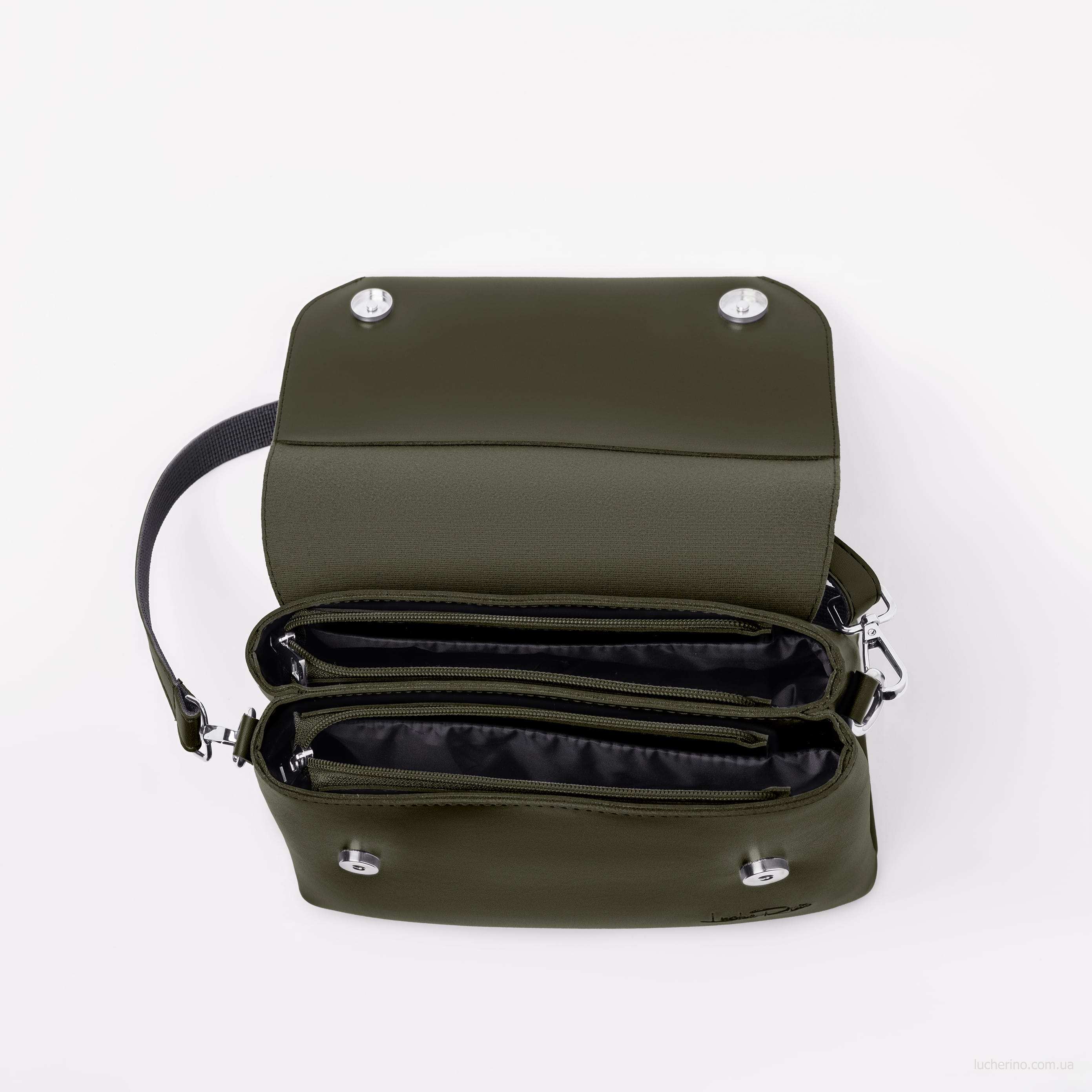 Невелика сумочка від українського виробника ТМ "LucheRino". Виготовлена з якісного шкірзамінника, підкладка з міцної текстильної тканини. Сумка на два відділення.