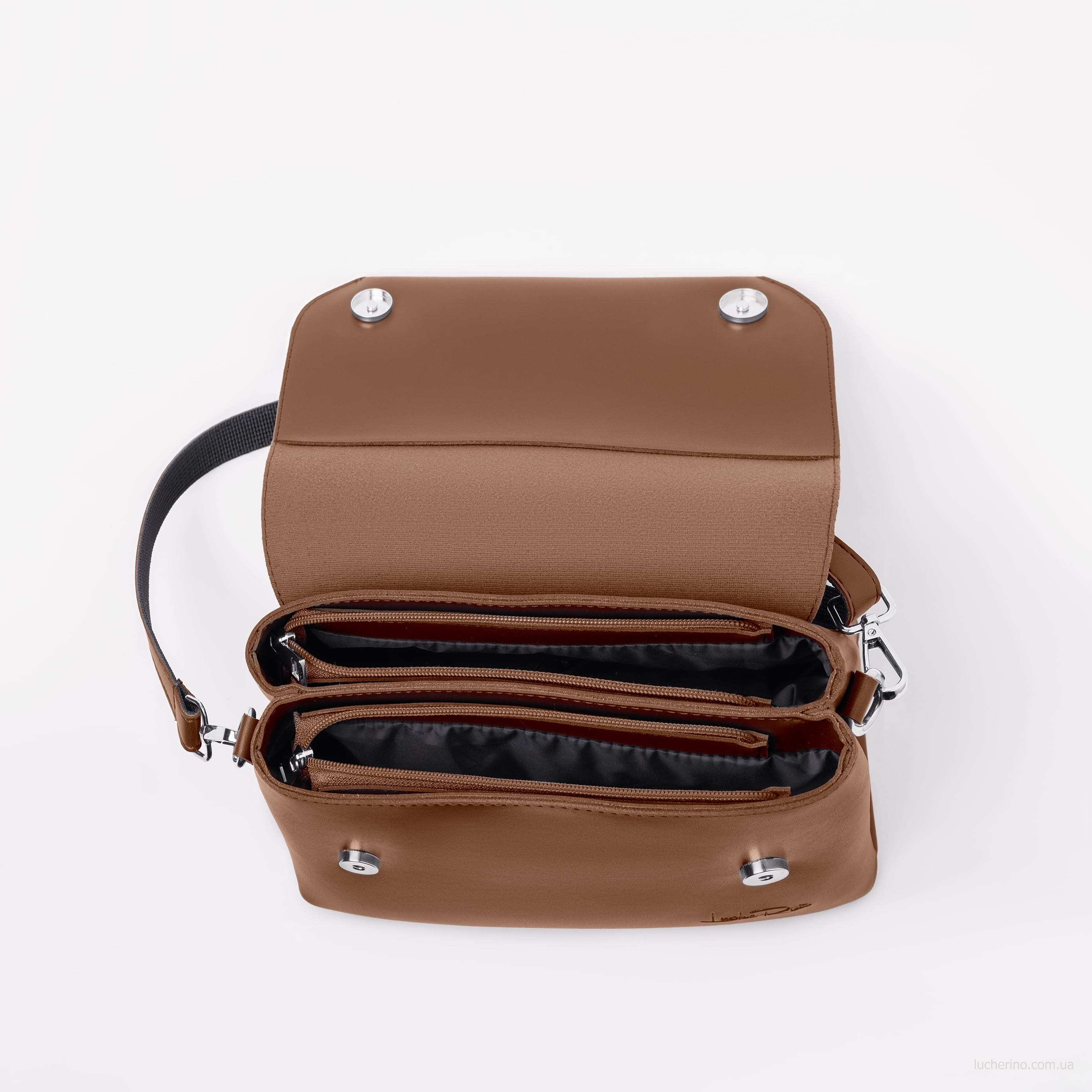 Невелика сумочка від українського виробника ТМ "LucheRino". Виготовлена з якісного шкірзамінника, підкладка з міцної текстильної тканини. Сумка на два відділення.