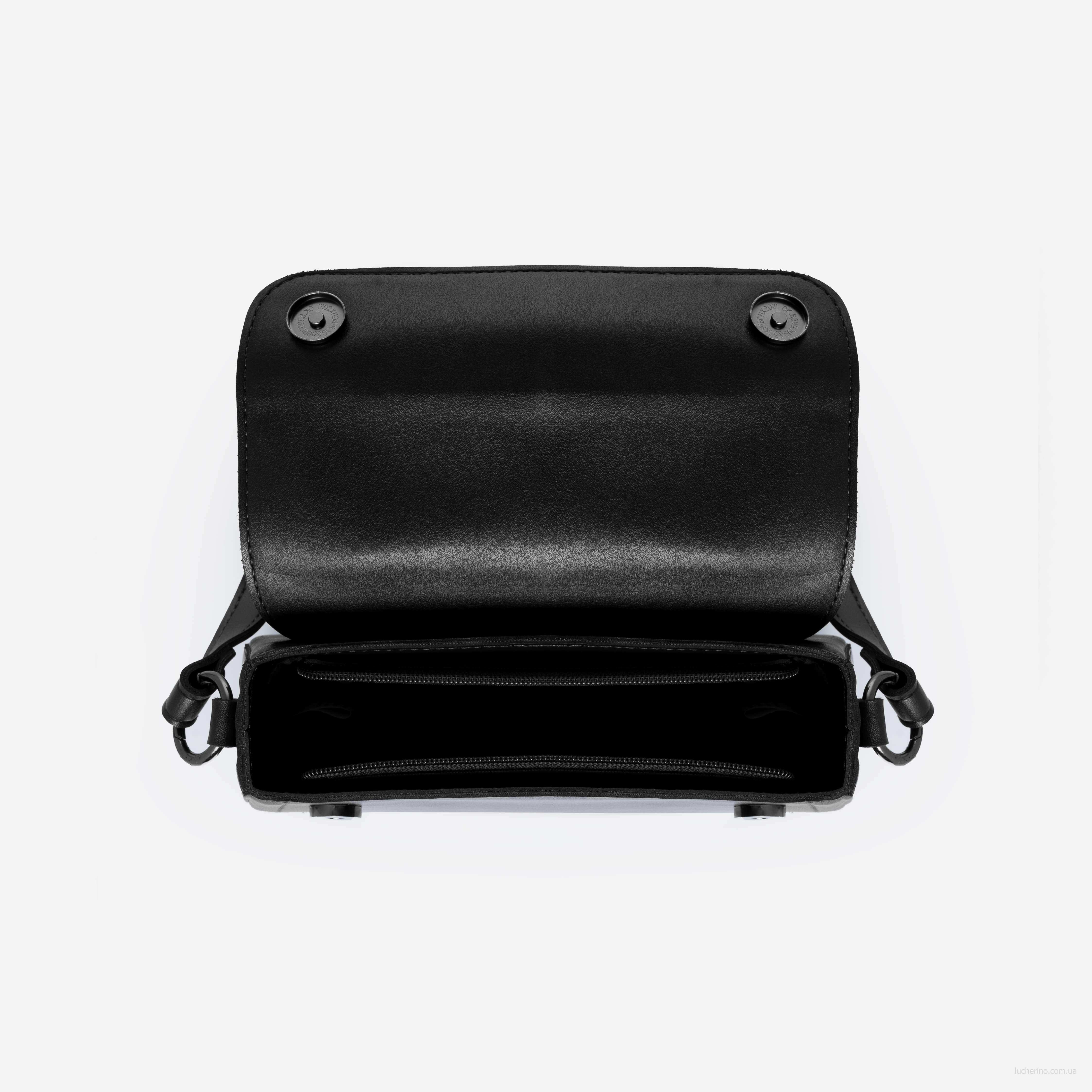 Весь виріб зачиняється на блискавку, яка накривається клапаном на магнітній кнопці. Сумочка має довгий ремінець, який можна відрегулювати під потрібний розмір, для легкого транспортування через плече, та короткий.