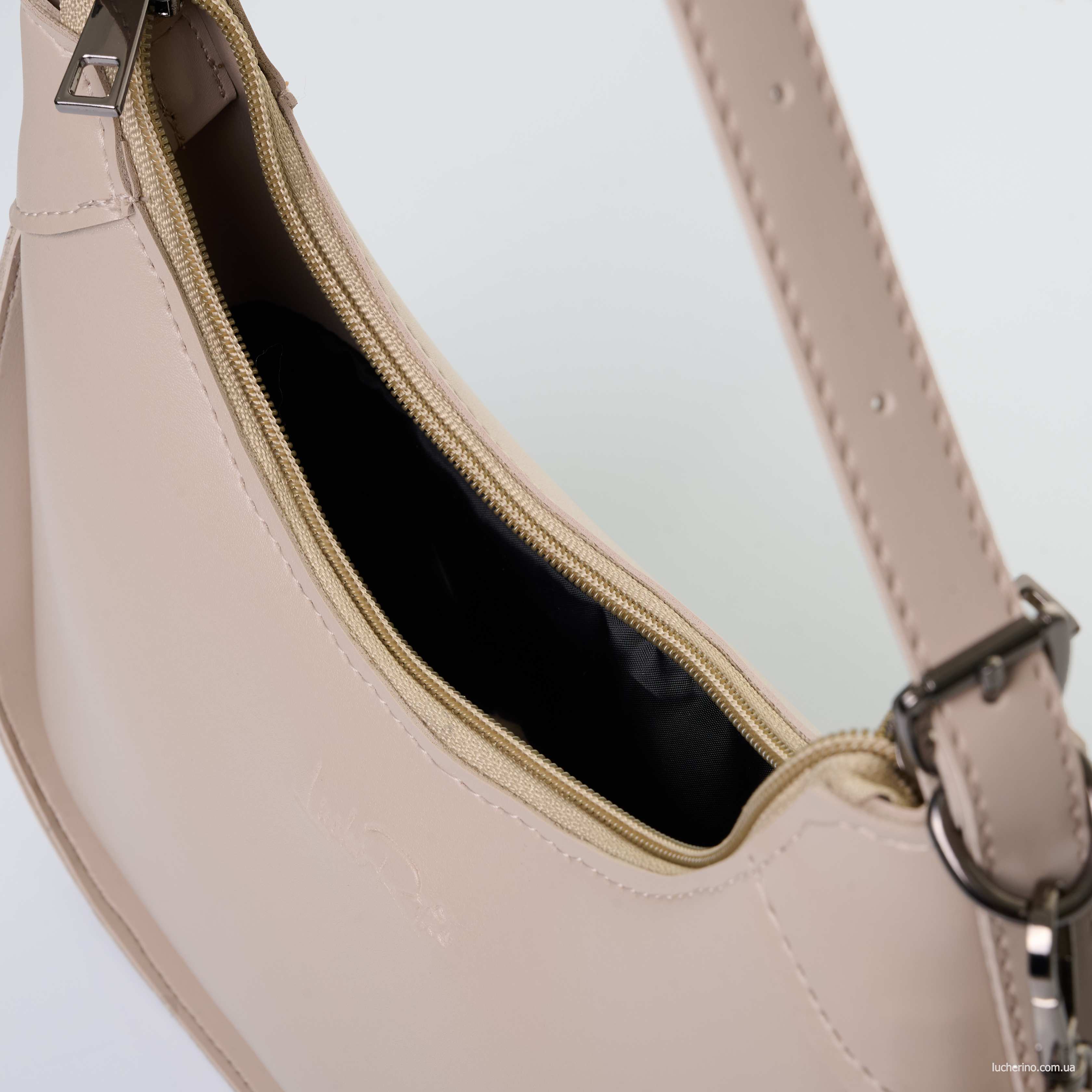 Сумка на одне загальне відділення. Не дивлячись на невеликі розміри, сумочка виявилась достатньо вмісткою. Весь виріб зачиняється на блискавку. Довгий ремінь з можливість регулювання довжини виготовлений з шкірзаміннику.